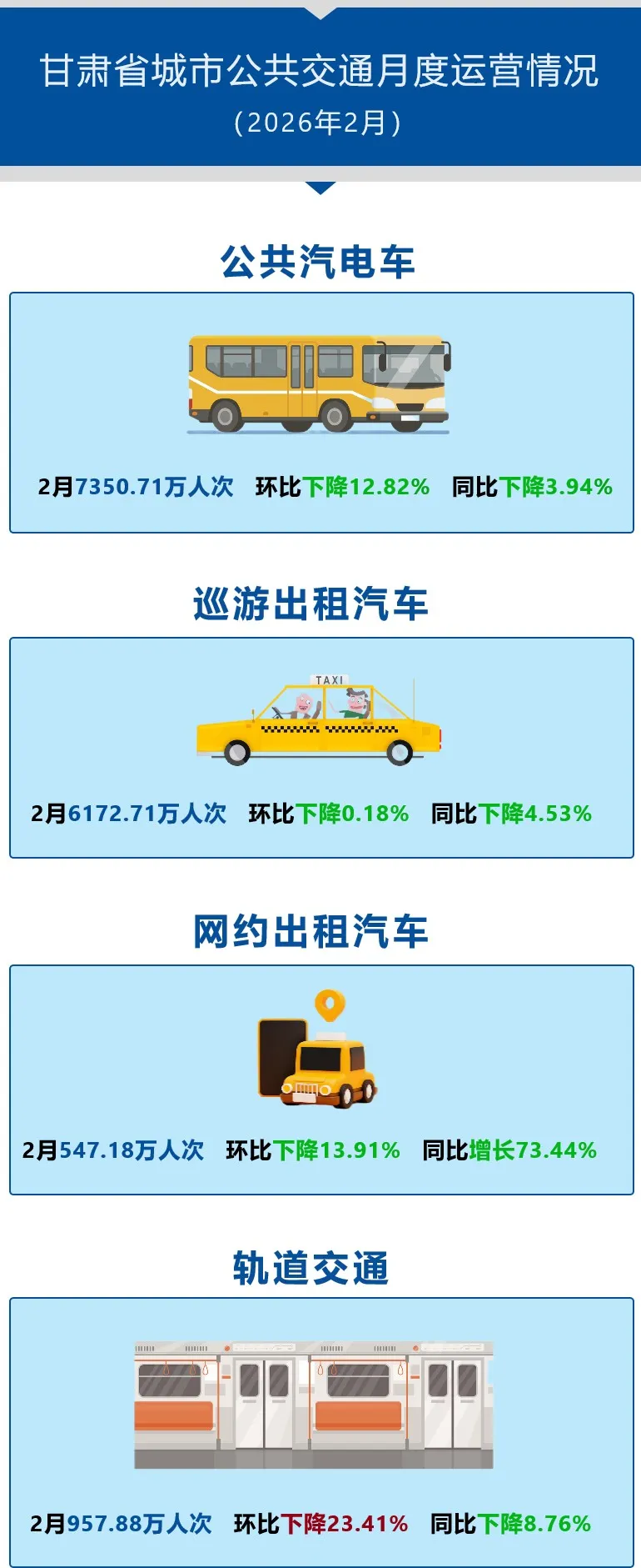 甘肃省城市公共交通月度运营情况(2026年2月)