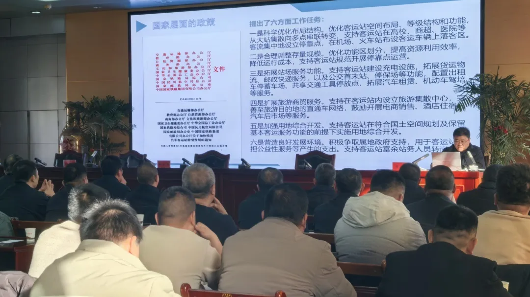 本次培训聚焦道路客运转型高质量发展,特邀省道路运输事业发展中心相关业务负责同志做专题辅导,对全省道路客运转型发展相关政策进行了解读,分析当前道路客运发展面临的机遇和挑战,并立足我省实际,结合大量实践案例,从道路客运行业转型升级、城市交通运输转型发展、城乡交通运输一体化转型、交通运输新业态发展、探索“十五五”期间道路客运发展等五个方面进行了深入浅出的讲解。