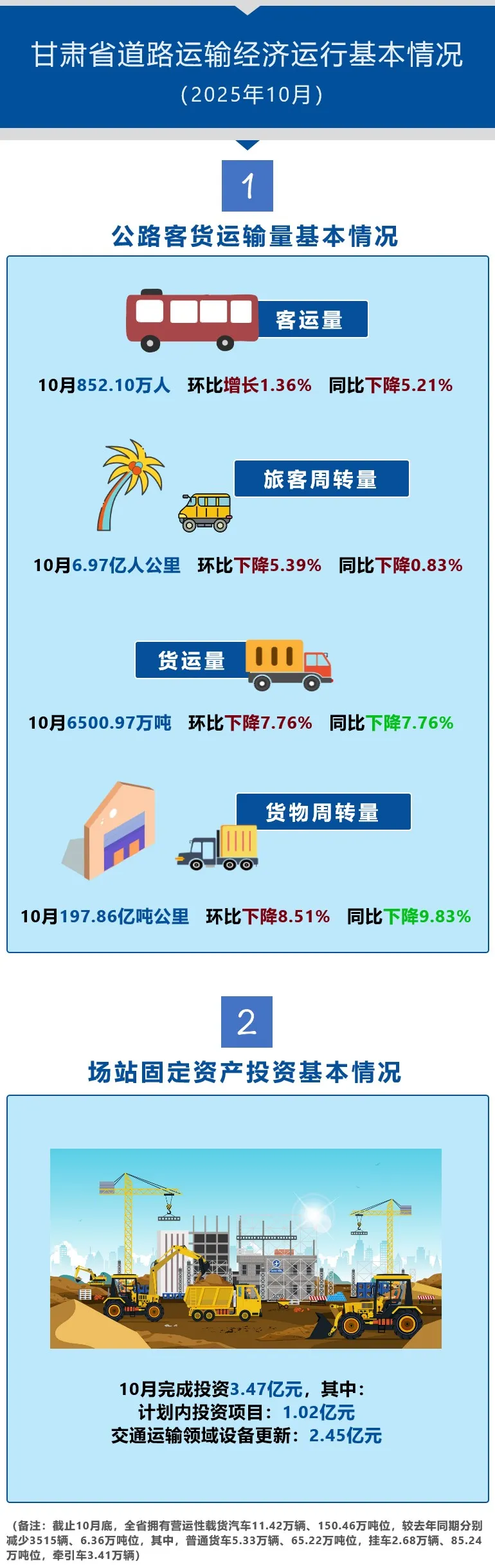 甘肃省道路运输经济运行基本情况(2025年10月)