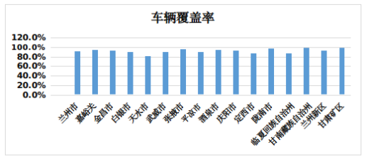 从地区来看,嘉峪关、张掖、陇南、甘南、甘肃矿区运单车辆覆盖率达到95%以上,天水、定西、临夏仍不足90%。