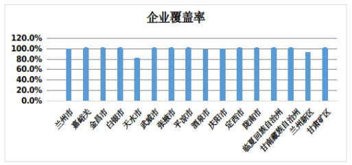 从地区来看,除兰州、天水、酒泉、庆阳、兰州新区外,其余地区运单企业覆盖率均达到100%。